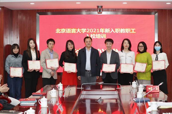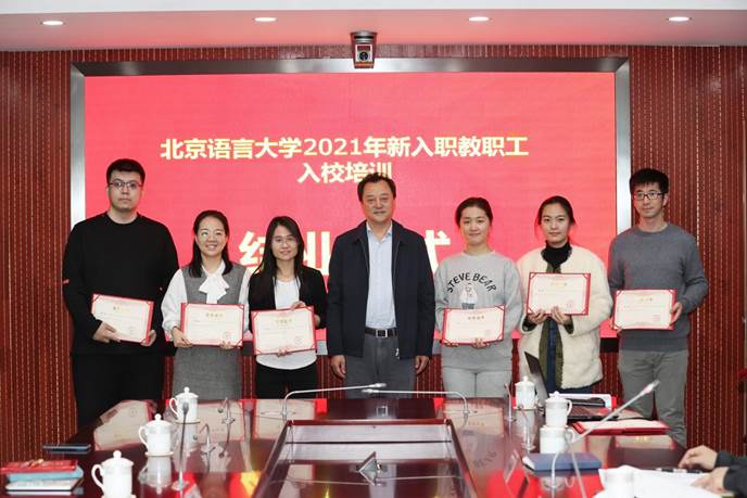 最后,倪海东书记为每位新教职工颁发结业证书并合影留念。2021年北京语言大学新教职工入校培训会结业仪式圆满落下帷幕。